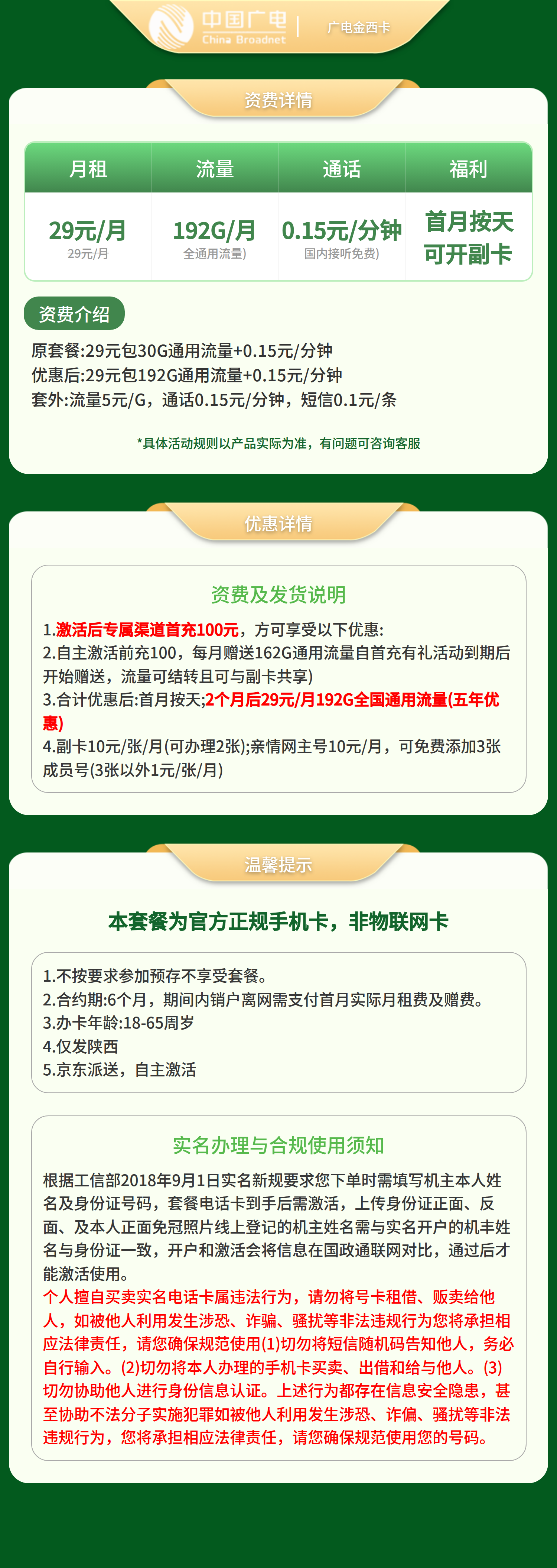 广电金西卡29元192G【只发陕西】套餐详情